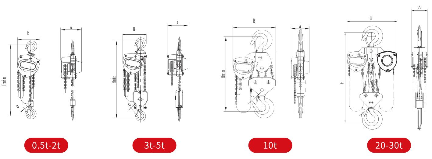 1.超載限制器 2. 不銹鋼手拉鏈 3. 高質(zhì)量專用鏈帶 4. 100級(jí)載重鏈