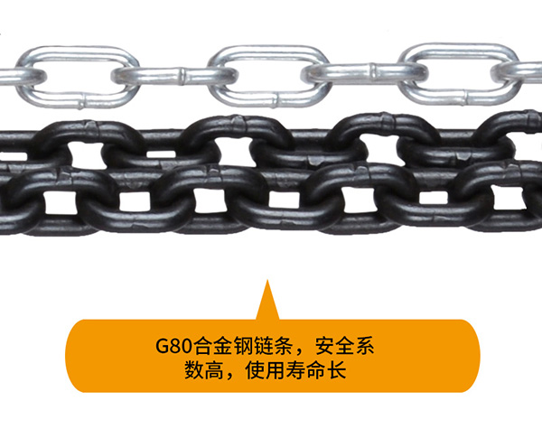 ● 采用80級高強度起重鏈條,安全系數高,使用壽命長