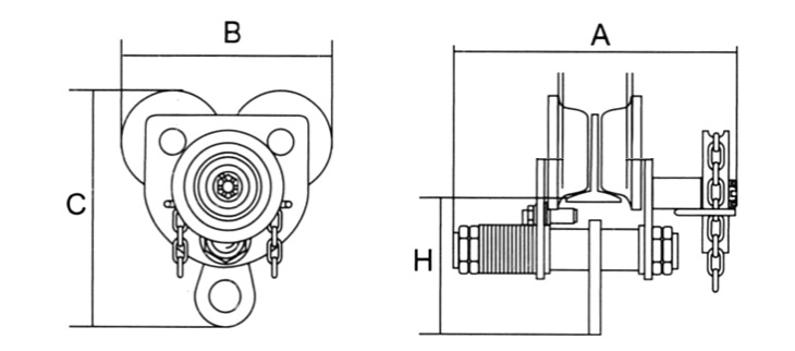 It is driven by pulling the hand chain and travels along the lower edge of I-beam.