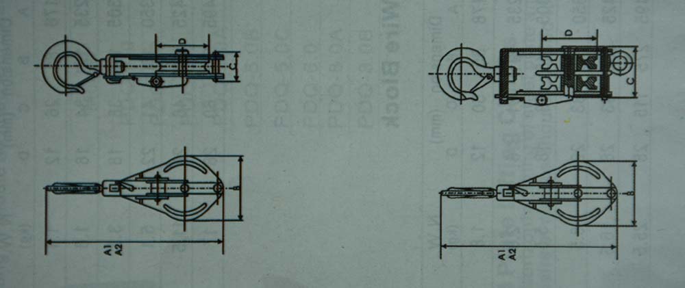 Type S.W.L. Sheave dia Dimension(mm) For wire dia N.W