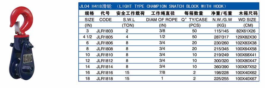 | TypeHook | S.W.L. | Sheave DlaD | A2 | B | C | For WIRE Dia | N.W. |