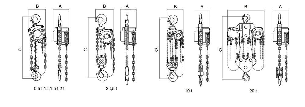 型號 額定載荷(t) 起升高度(m) 試驗載荷(KN) 手拉力 (N) 起重鏈條 尺寸規格(mm) 重量(kg)